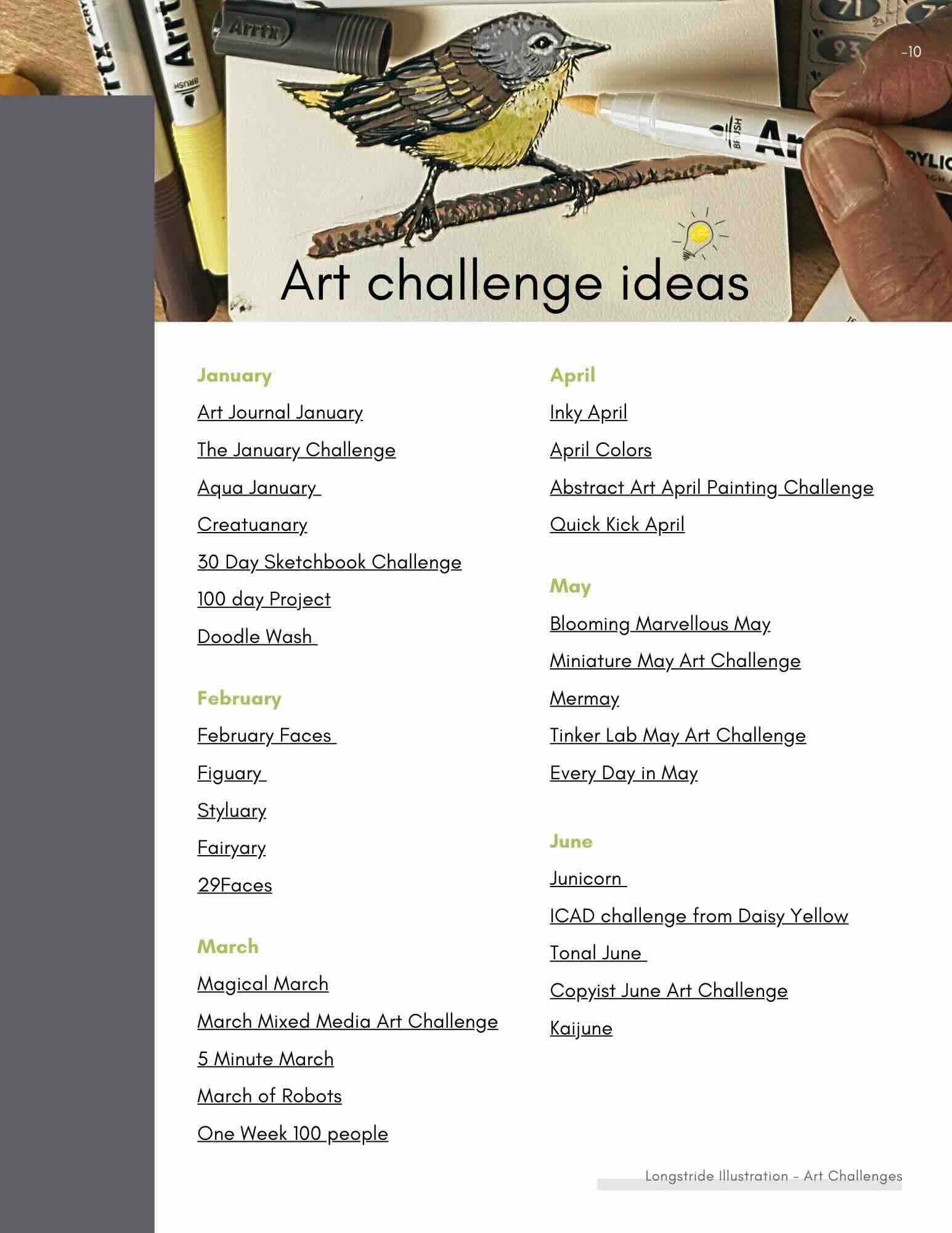 Art challenges are a fantastic, simple way to stay accountable to your aspirations and be part of a like-minded community, knowing that you’re not alone in your pursuits.
